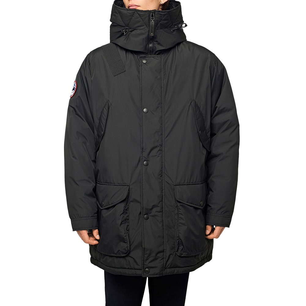 - Фирменный декор: съемный шеврон «Аrctic Explorer» на рукаве, погон на одном плече, повторяющий настоящие полярные погоны, нашивка «Северный полюс» на хлястике капюшона.