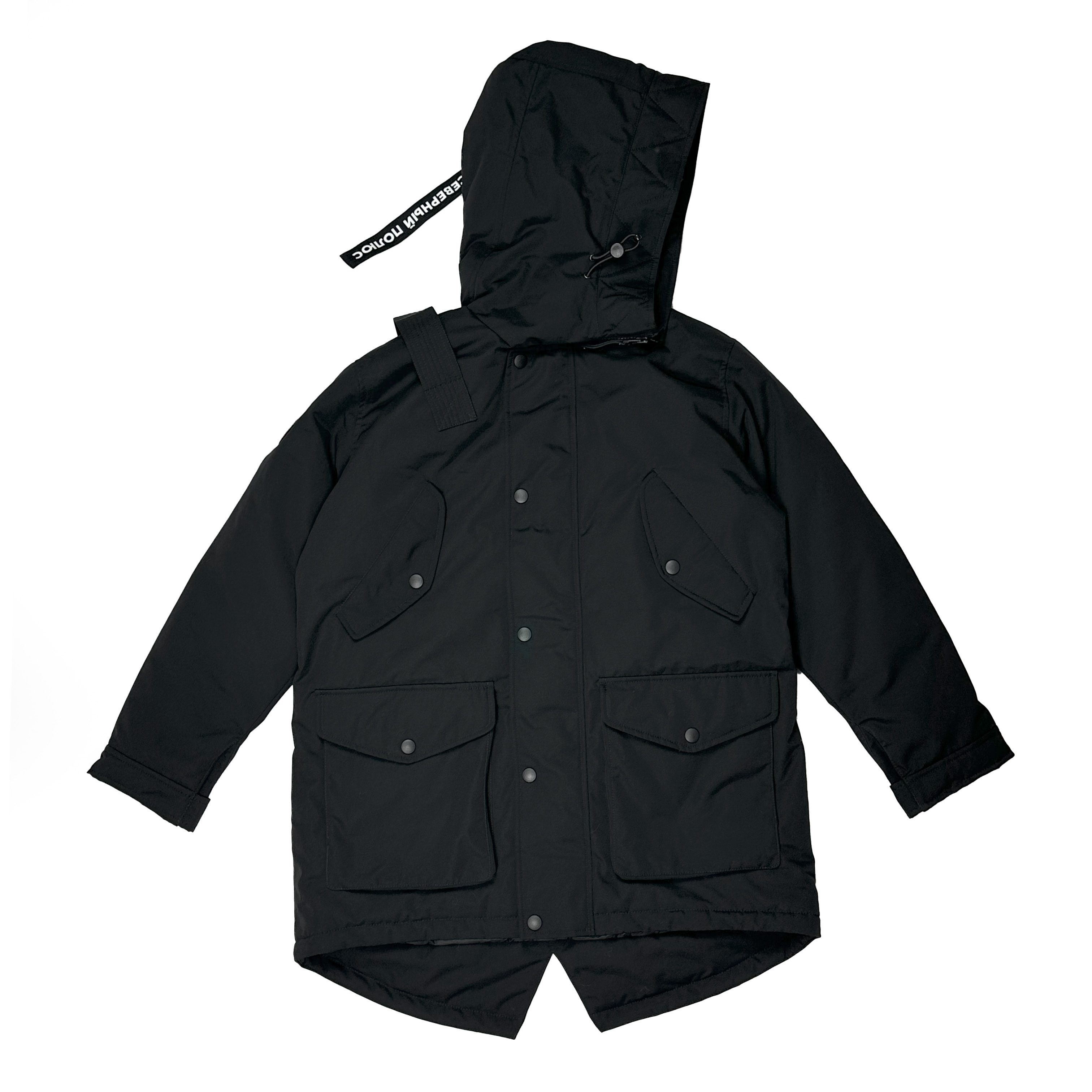 - Фирменный декор: съемный шеврон «Аrctic Explorer» на рукаве, погон на одном плече, повторяющий настоящие полярные погоны, нашивка «Северный полюс» на хлястике капюшона.