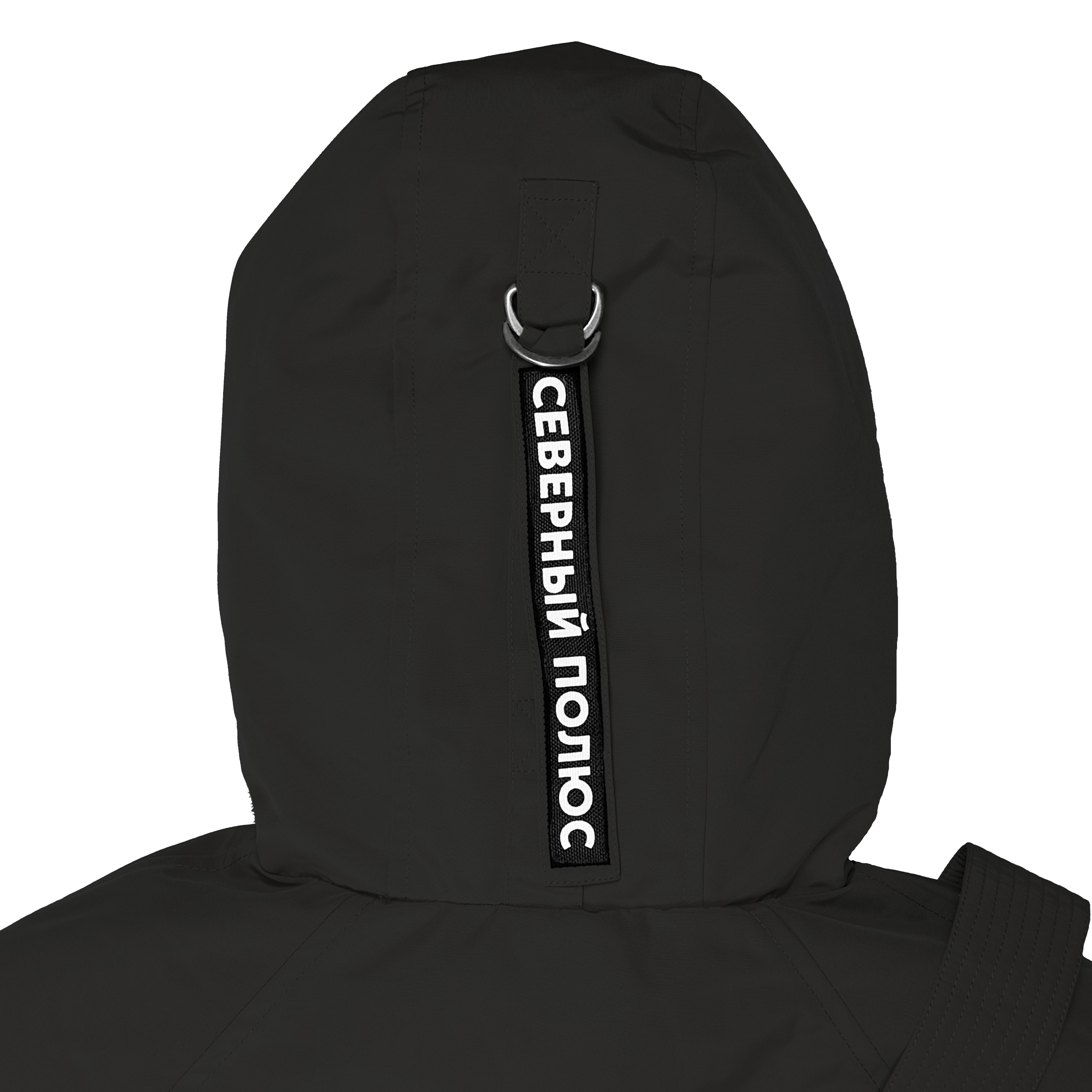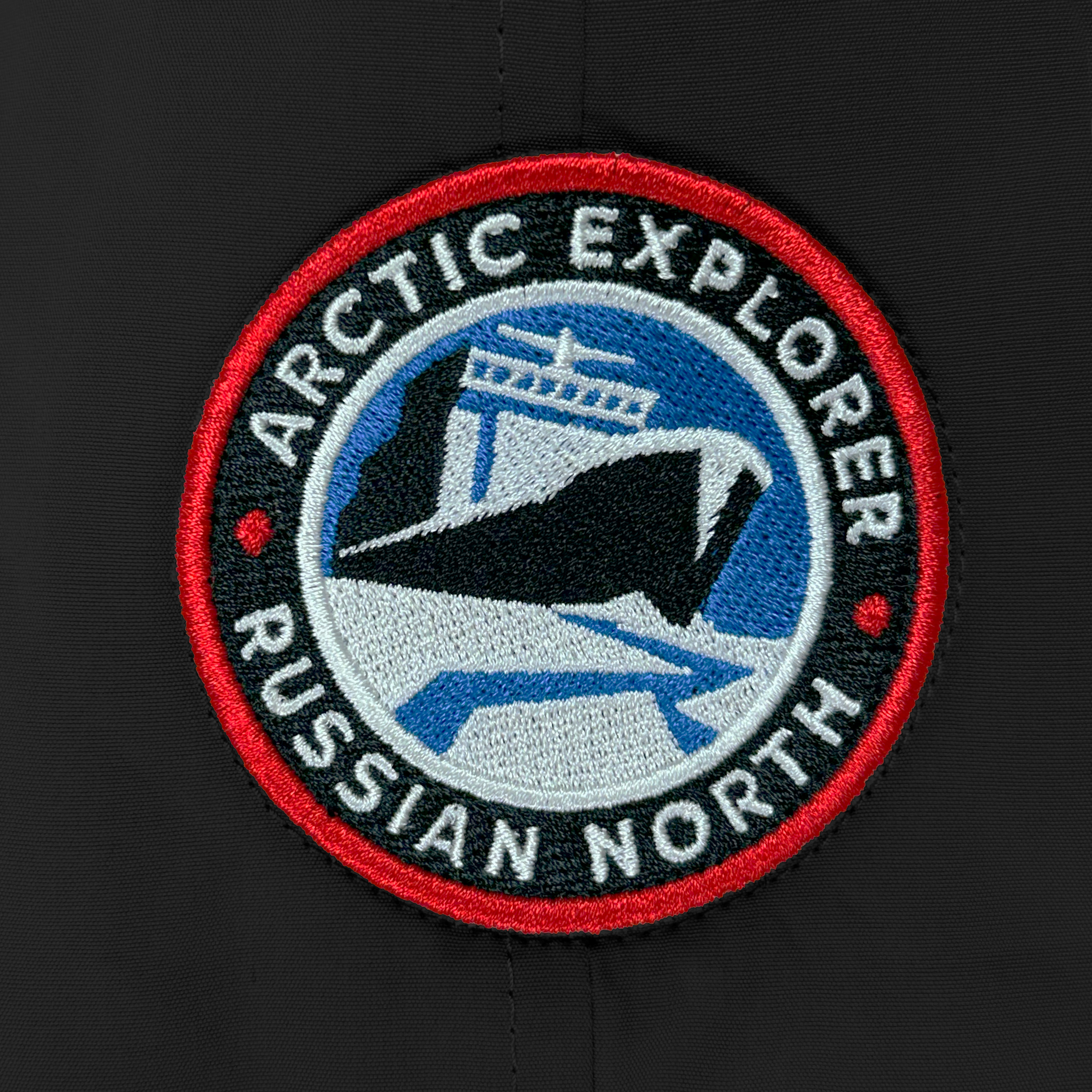 - Фирменный декор: съемный шеврон «Аrctic Explorer» на рукаве, погон на одном плече, повторяющий настоящие полярные погоны, нашивка «Северный полюс» на хлястике капюшона, декор из натуральной кожи.
