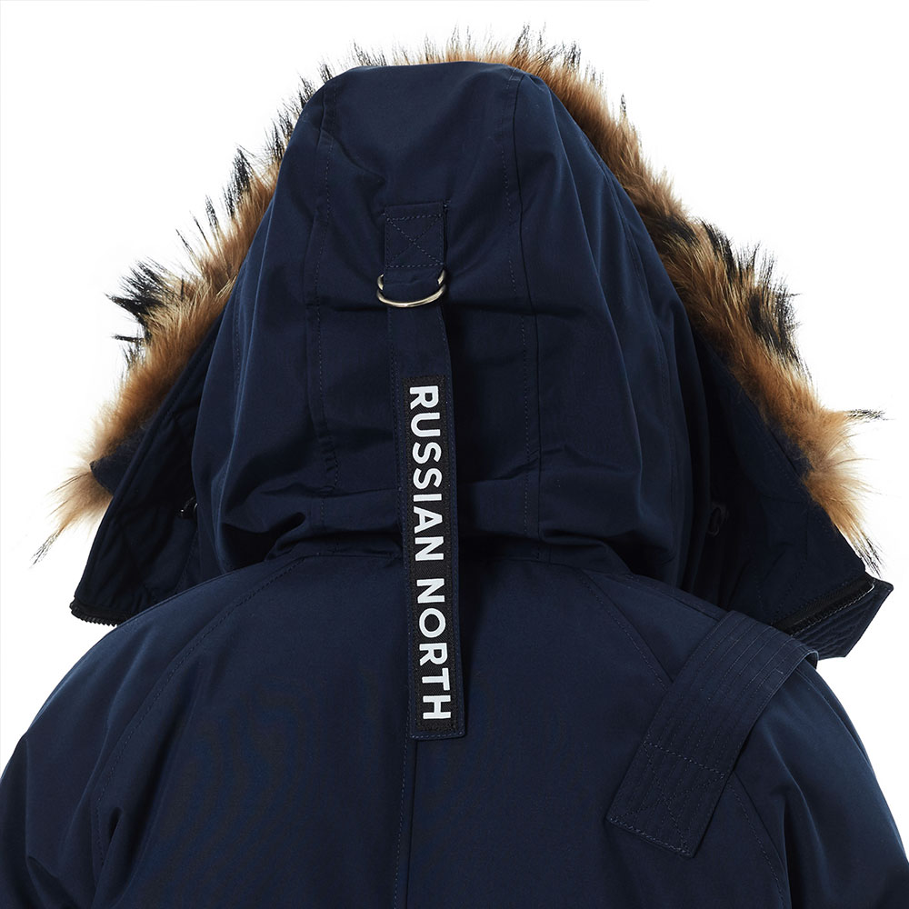 - Шеврон Arctic Explorer Russian North на рукаве и нашивка Russian North на хлястике капюшона напоминают о наследии бренда