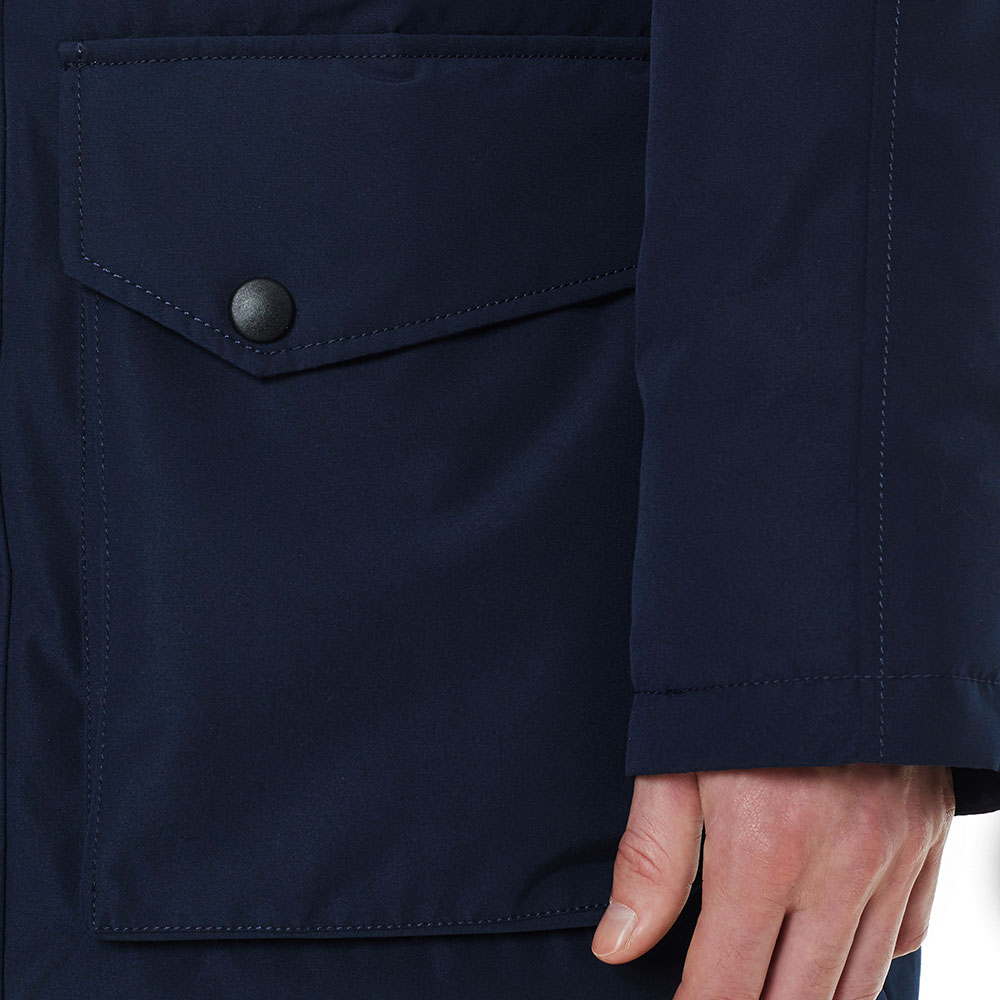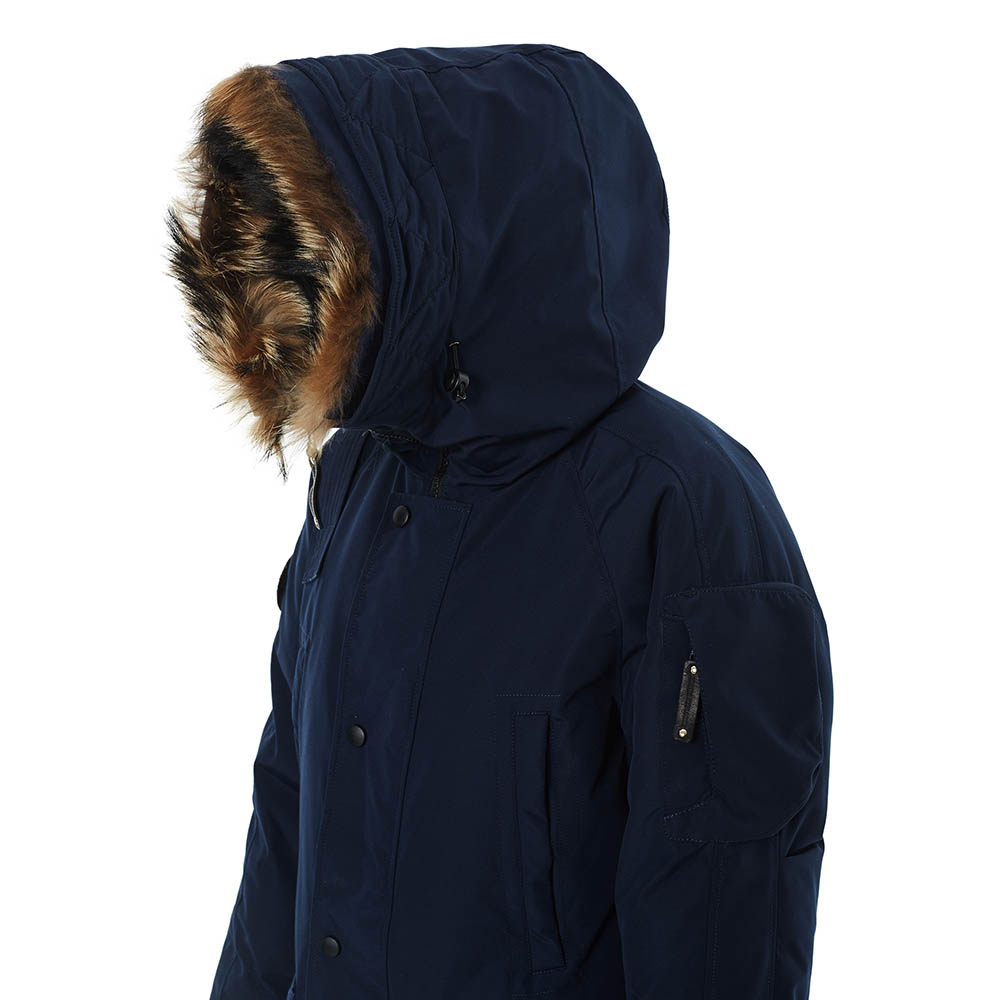 Мужская зимняя куртка выполнена из мембранной ткани 6000/6000 с водоотталкивающей обработкой (WR) спасет вас от дождя и мокрого снега . Внутренние теплые манжеты; капюшон-труба с опушкой из натурального меха (отстегивается); утепленные внешние карманы; накладной карман на рукаве; погон на одном плече – реплика на полярные погоны. А также: