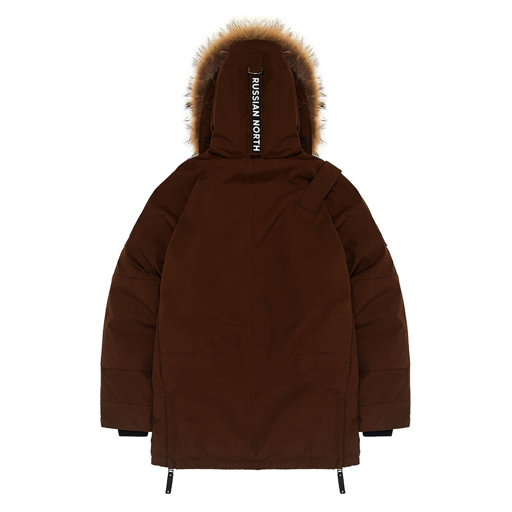 CHILL сохранила все отличительные особенности изделий бренда: съемный шеврон Arctic Explorer на рукаве и нашивку Russian North на хлястике капюшона, внутренние теплые манжеты; капюшон-труба с опушкой из натурального меха (отстегивается); утяжки на капюшоне и талии; погон на одном плече – реплика на полярные погоны. А также: