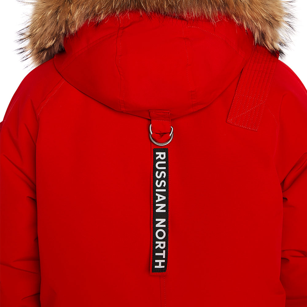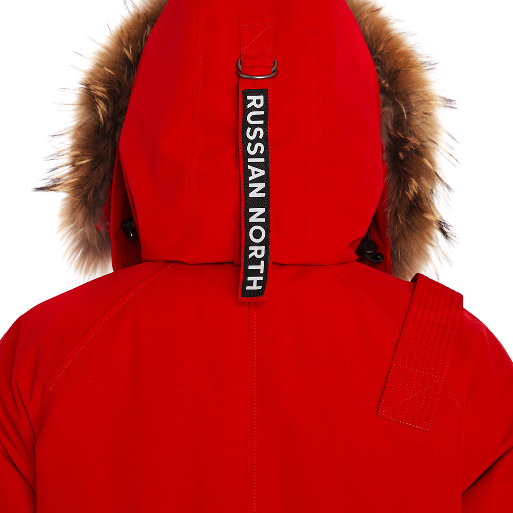 - Шеврон Arctic Explorer Russian North на рукаве и нашивка Russian North на хлястике капюшона напоминают о наследии бренда