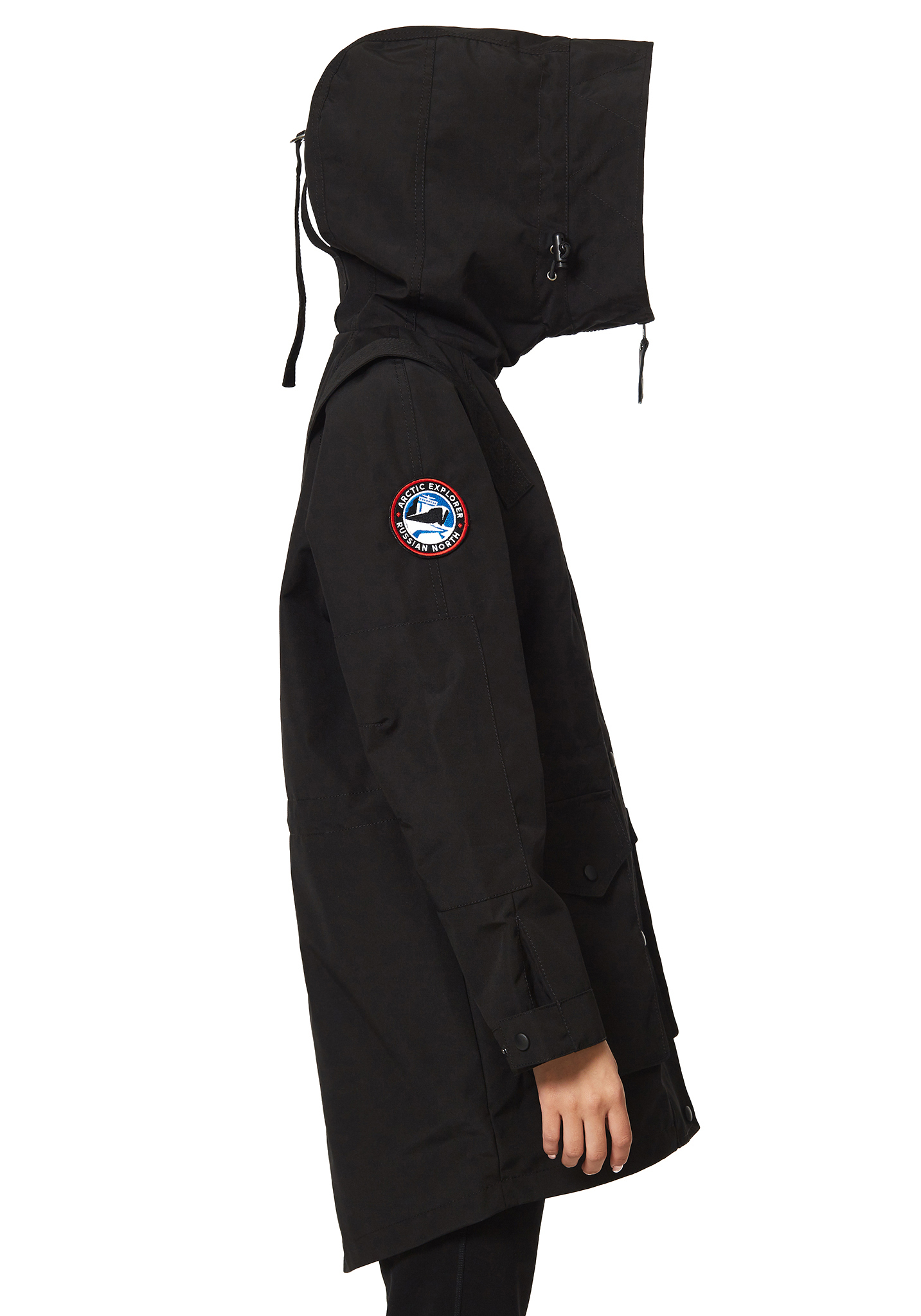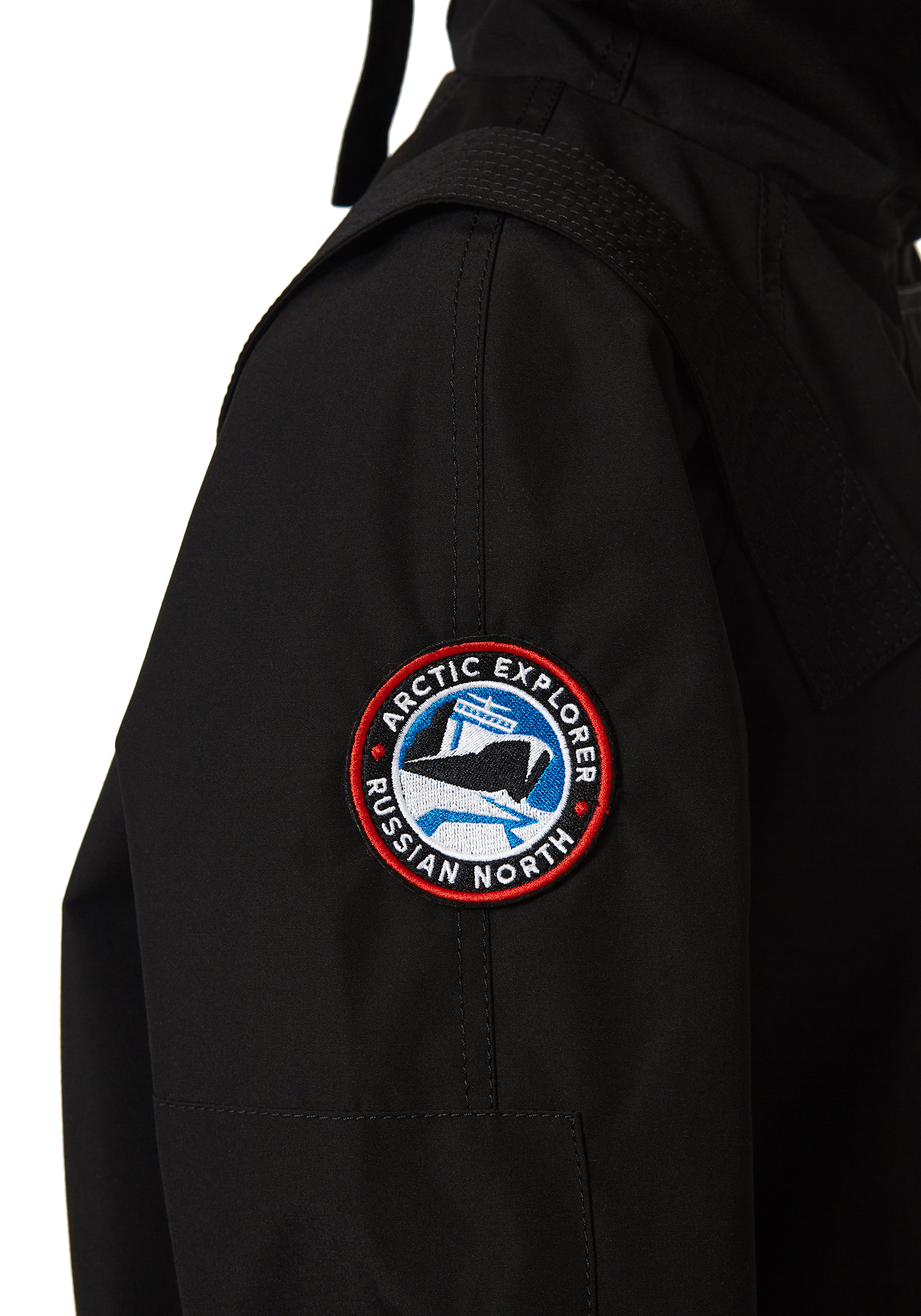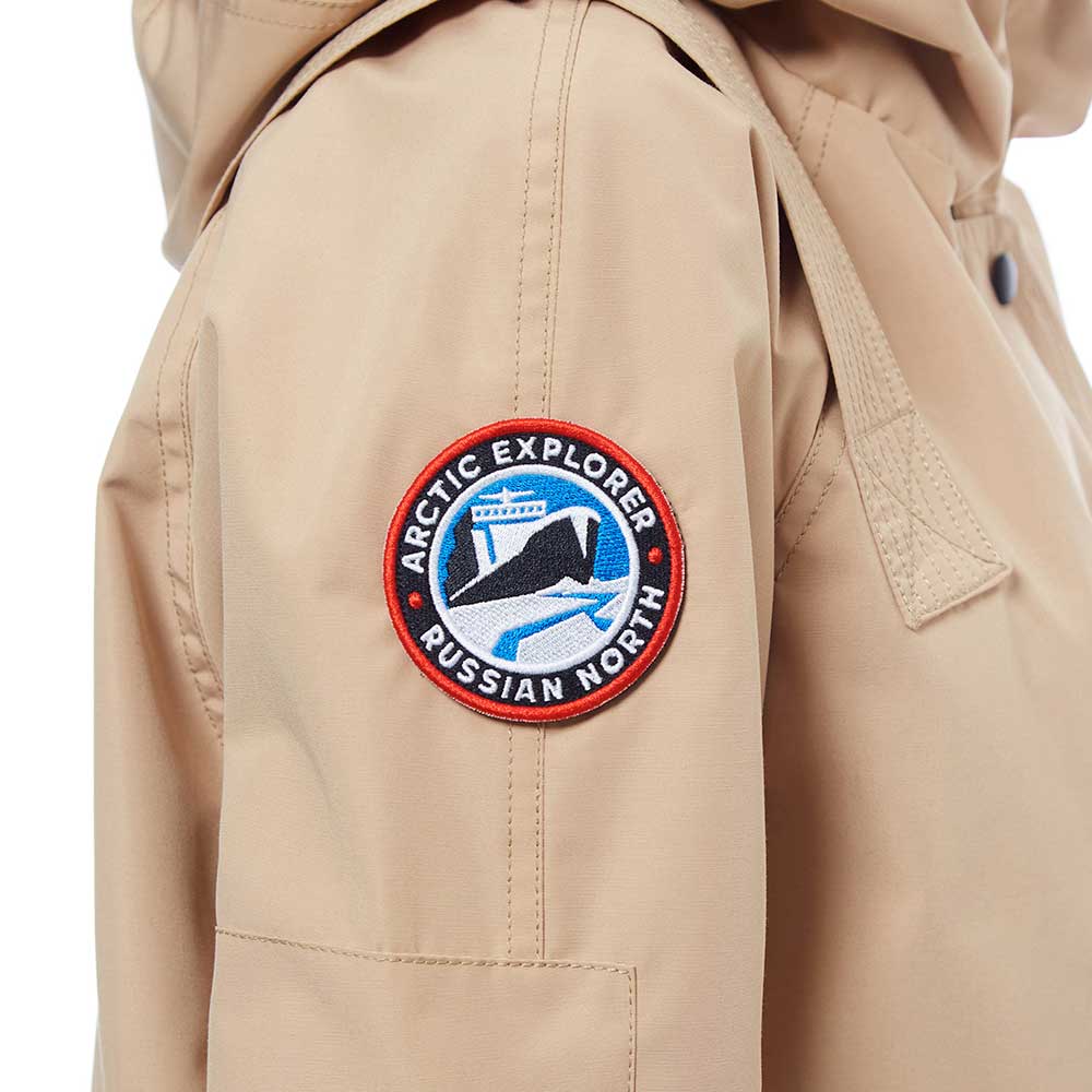 - Фирменные детали — кожаные пуллеры, съемный шеврон Arctic Explorer, хлястик Russian North подчеркивают стиль и узнаваемость бренда.