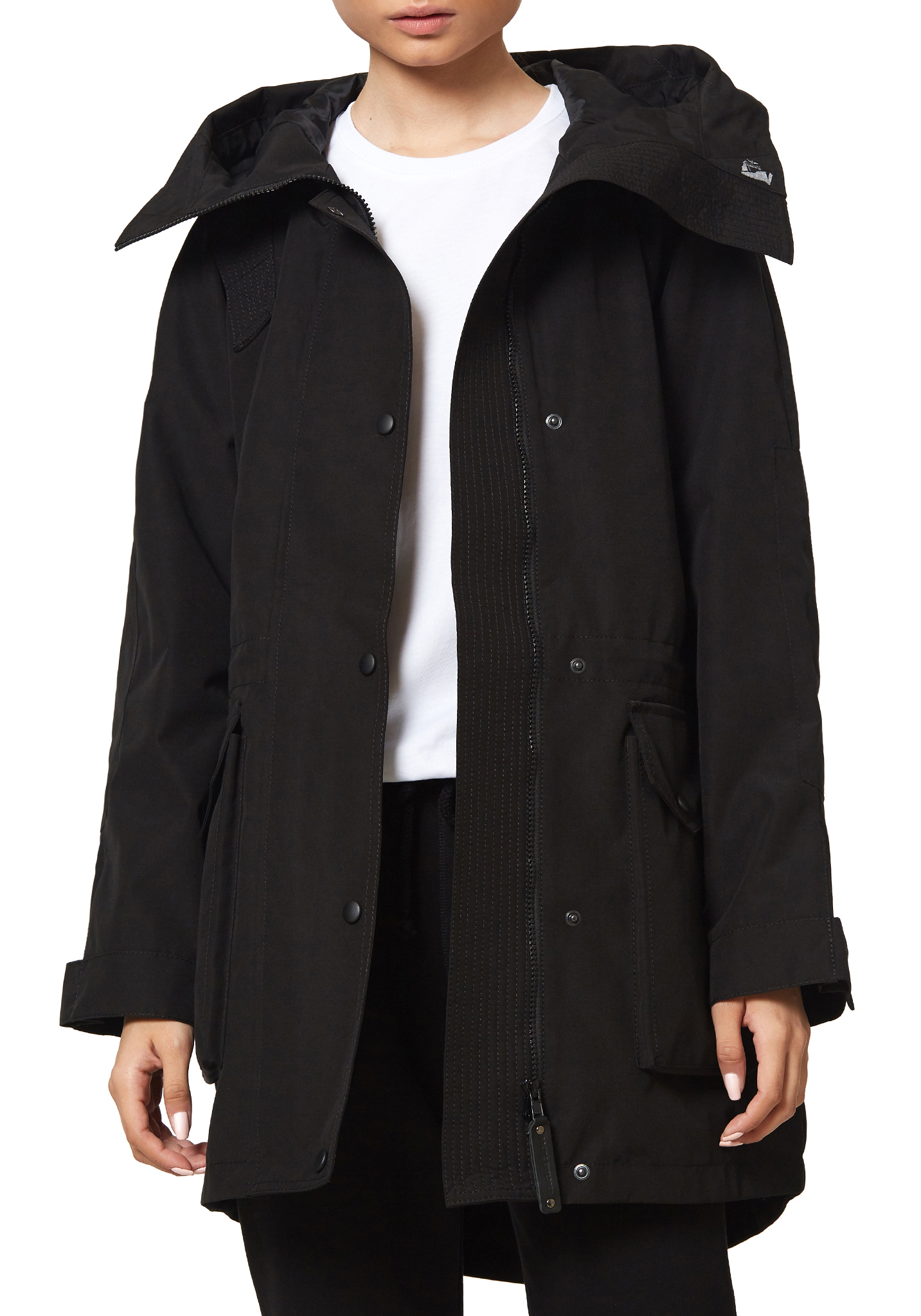 - Функциональный капюшон формы «труба» — оснащен двумя утяжками, позволяет точно отрегулировать посадку под индивидуальные предпочтения.