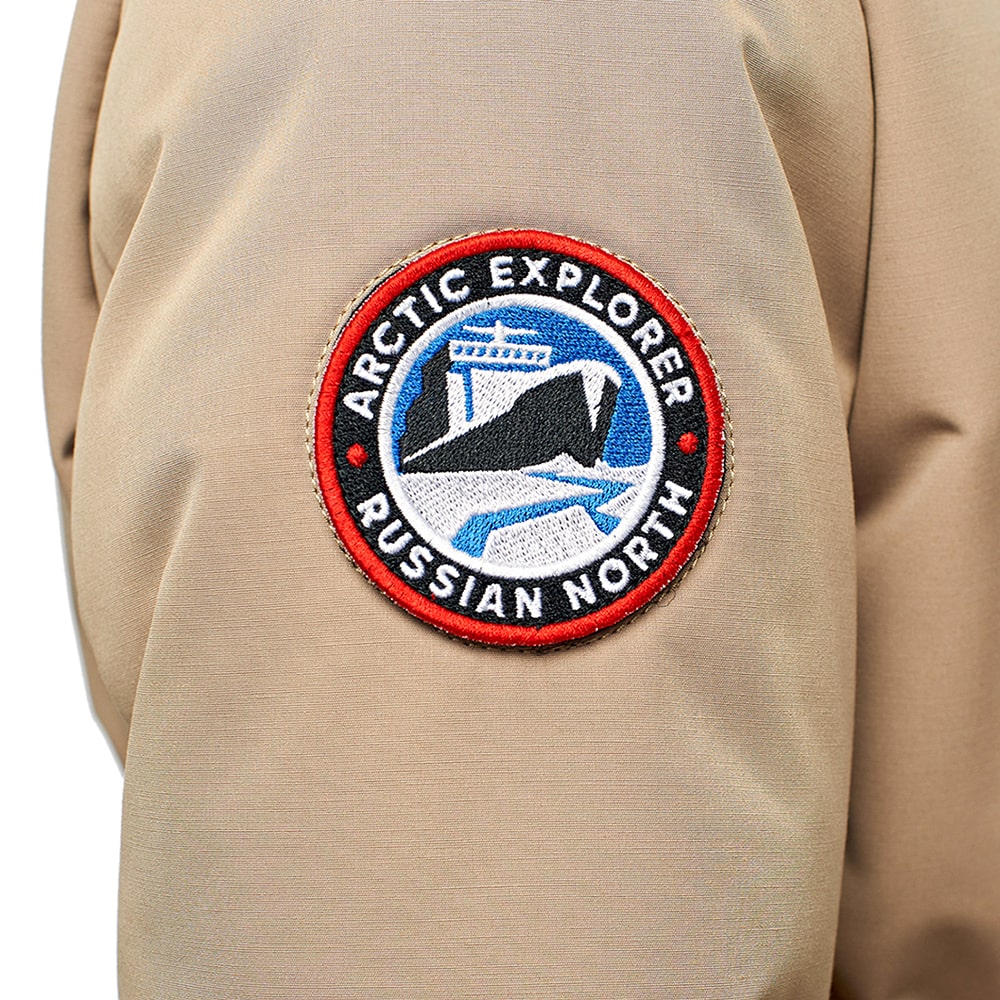 - декор: съемный шеврон «Аrctic Explorer» на рукаве пальто, пуллеры из натуральной кожи.