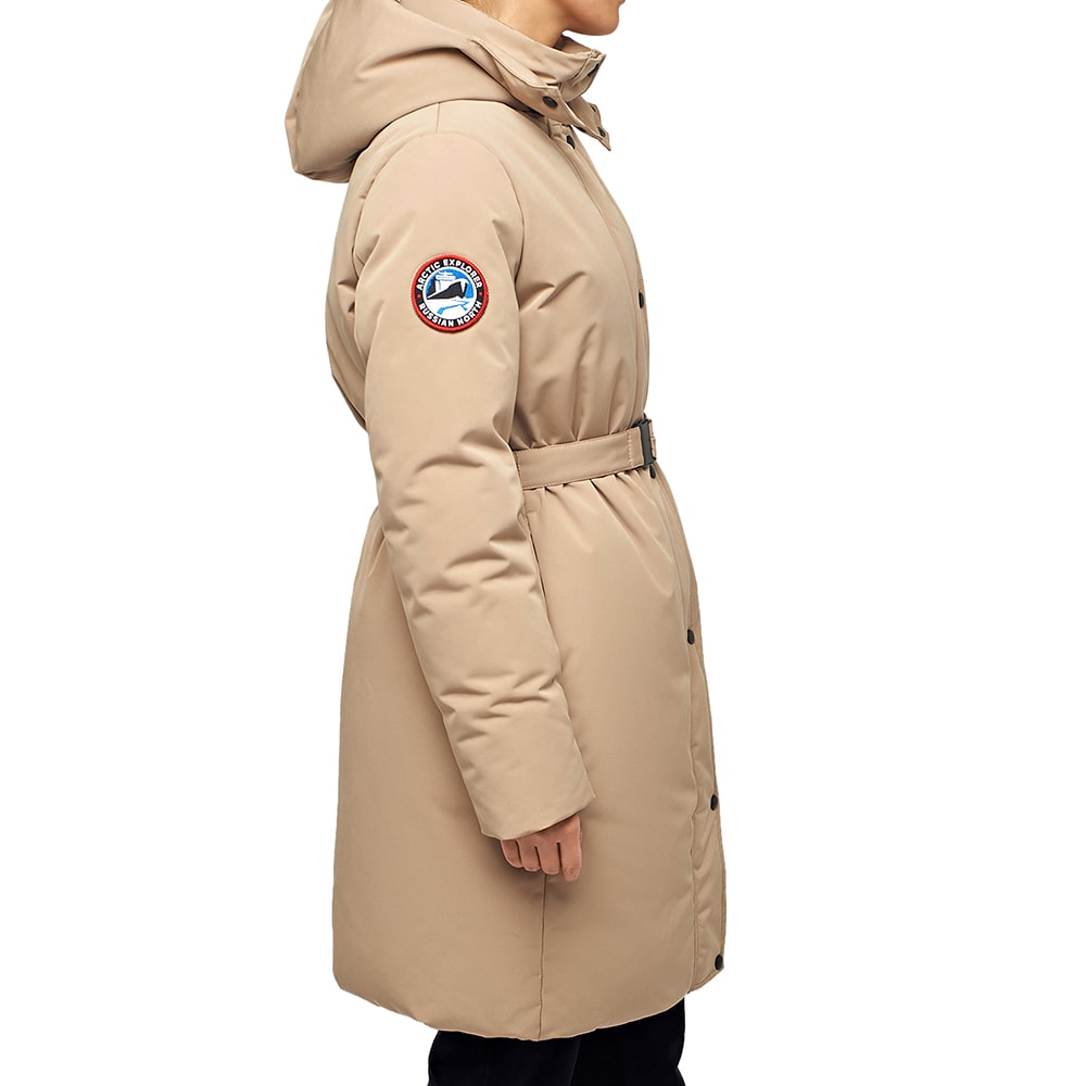 Пальто «NEVA» – новая модель зимней одежды для женщин в коллекции Arctic Explorer. Основная ткань - мембрана с уровнями водостойкости и воздухопроницаемости 6000/6000. Для усиления водоотталкивающих свойств мембранная ткань подверглась дополнительной WR-обработке. Утеплитель – тщательно отобранный гусиный пух, прошедший дополнительную обработку против возбудителей аллергии.