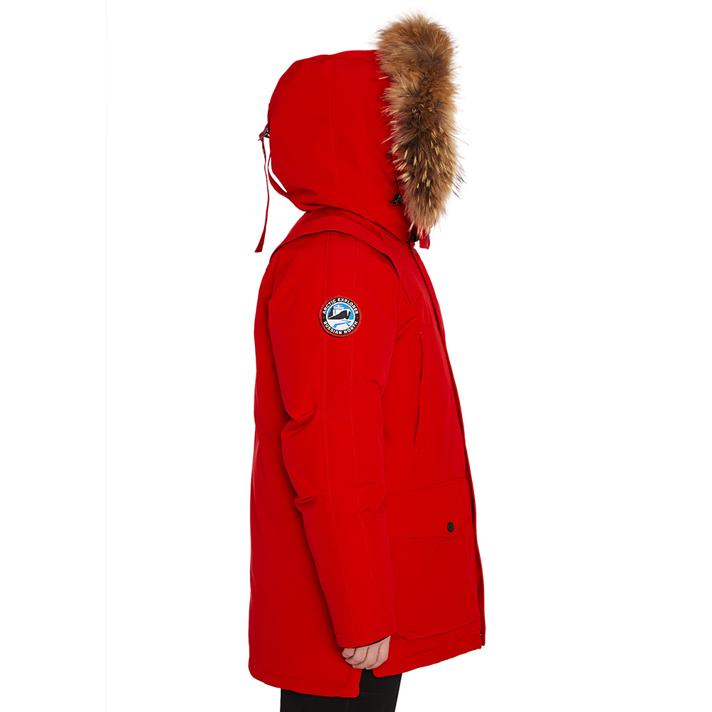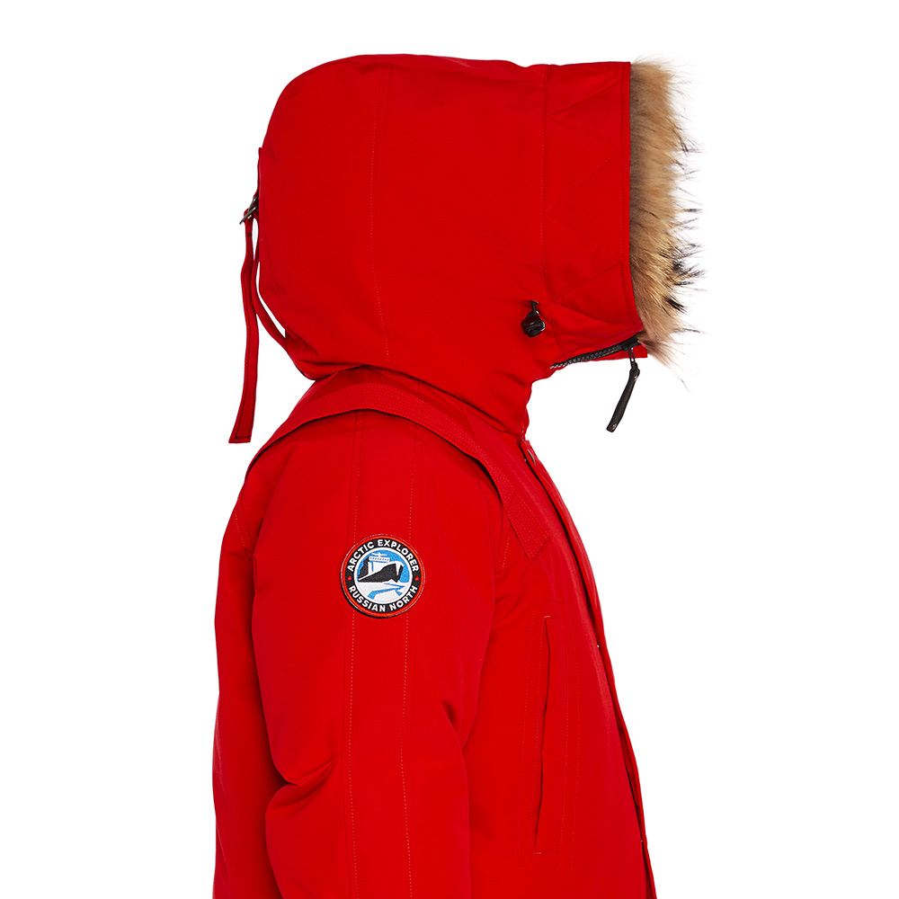 - Шеврон Arctic Explorer Russian North на рукаве и нашивка Russian North на хлястике капюшона напоминают о наследии бренда