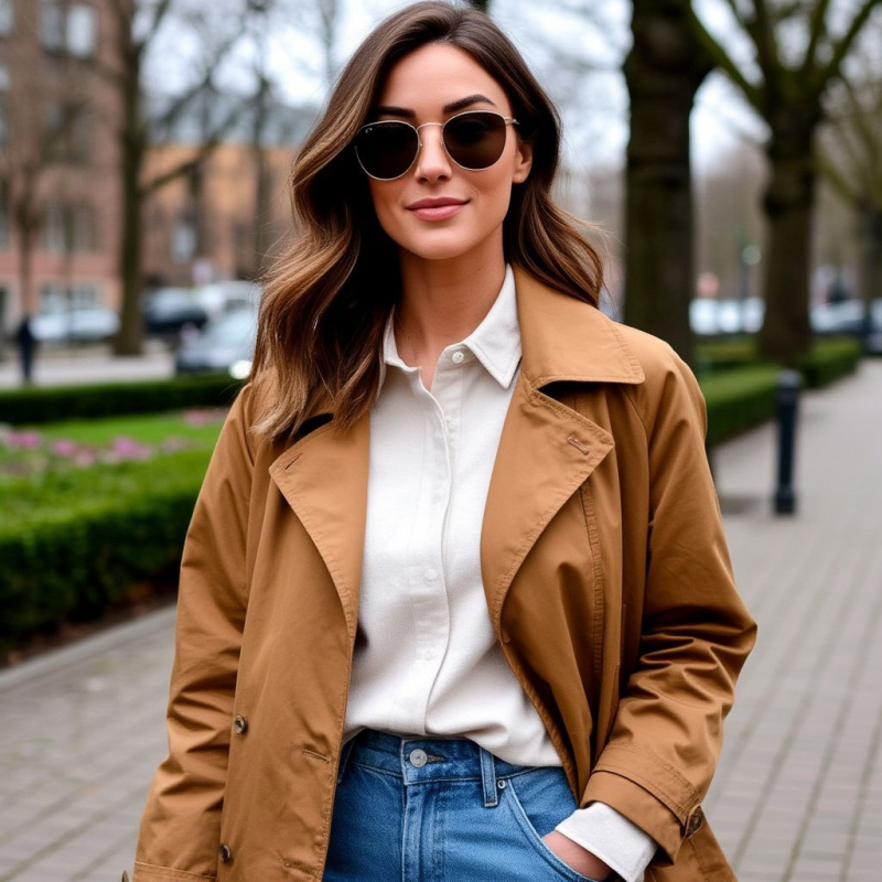 - Тренч – элегантное решение, особенно в сочетании с деловым стилем.